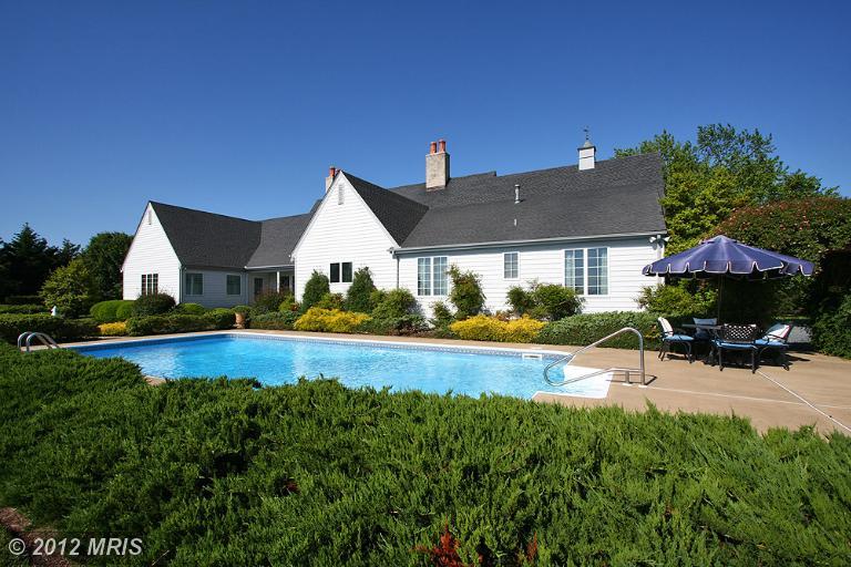 Award-winning Country French Classic by Jack Arnold on the Tred Avon River. Spacious and private main level master suite. Kitchen/Family combo with fireplace. Seperate dining room and living room with fireplace. Three guest suites, vaulted ceilings, a 2-car garage, tidal pond, dock with water and electric, heated pool, pool house, and extensive landscaping complement the property.